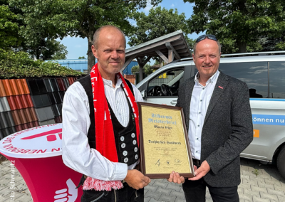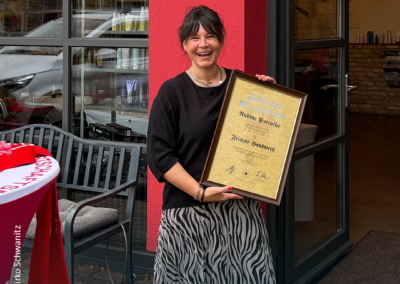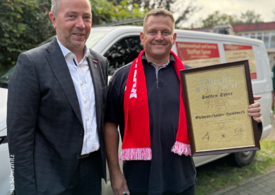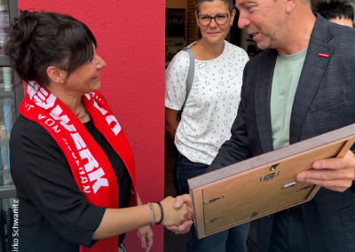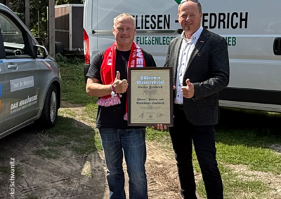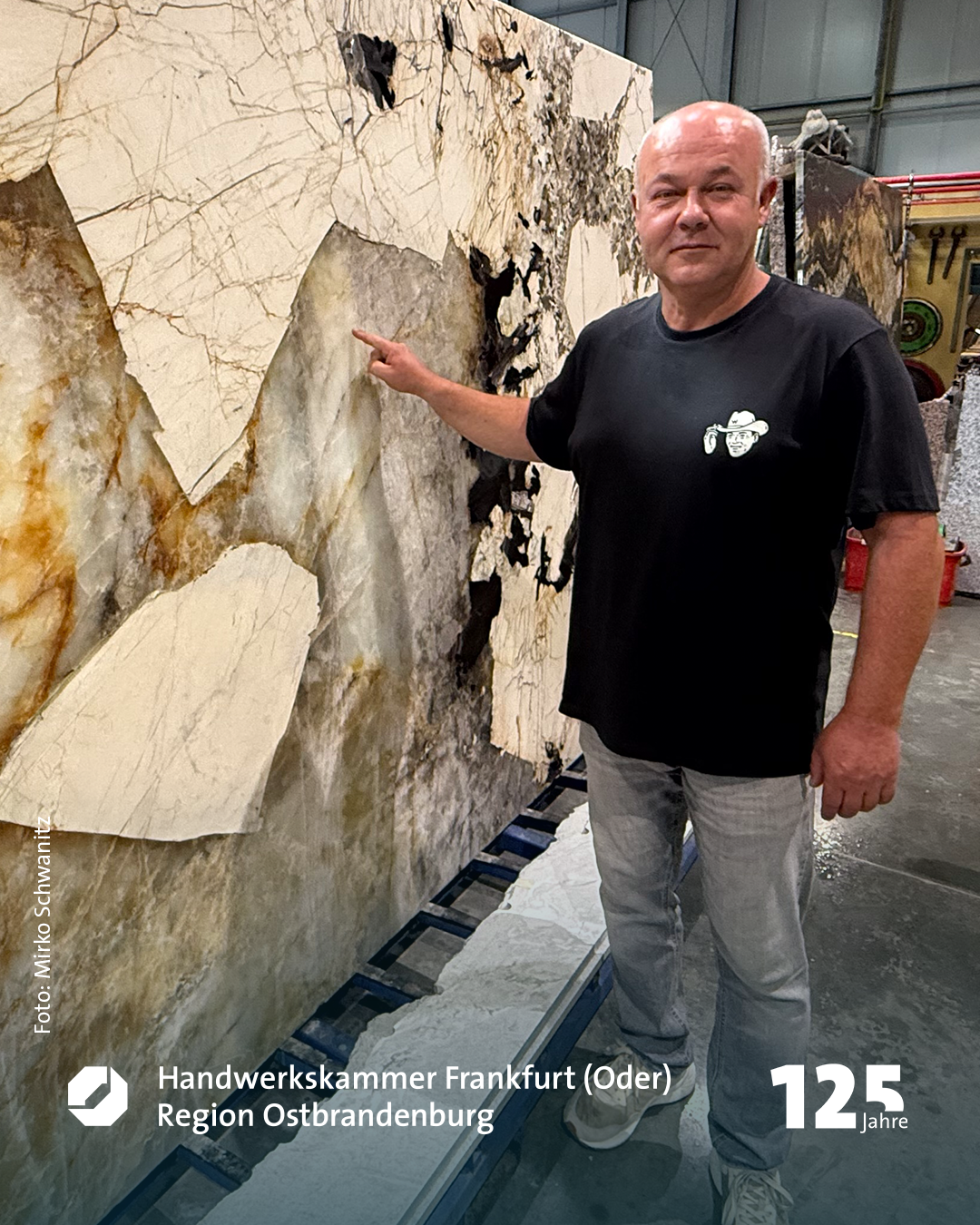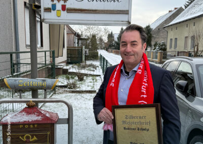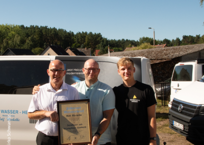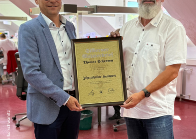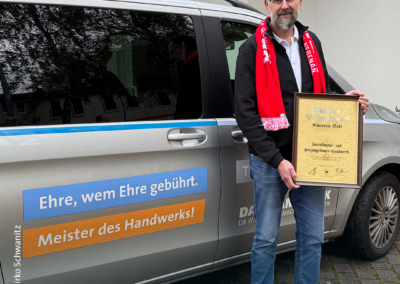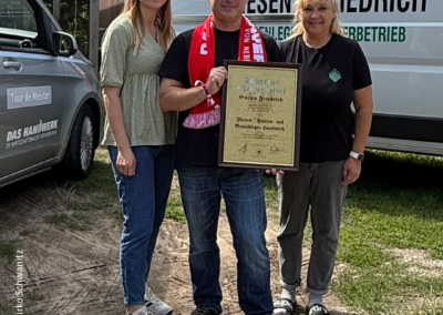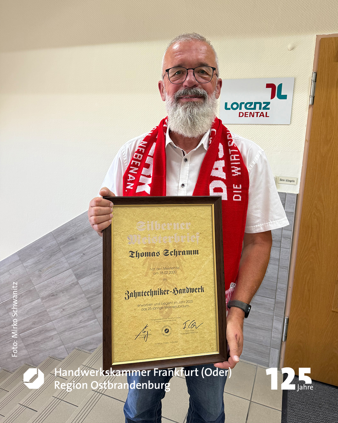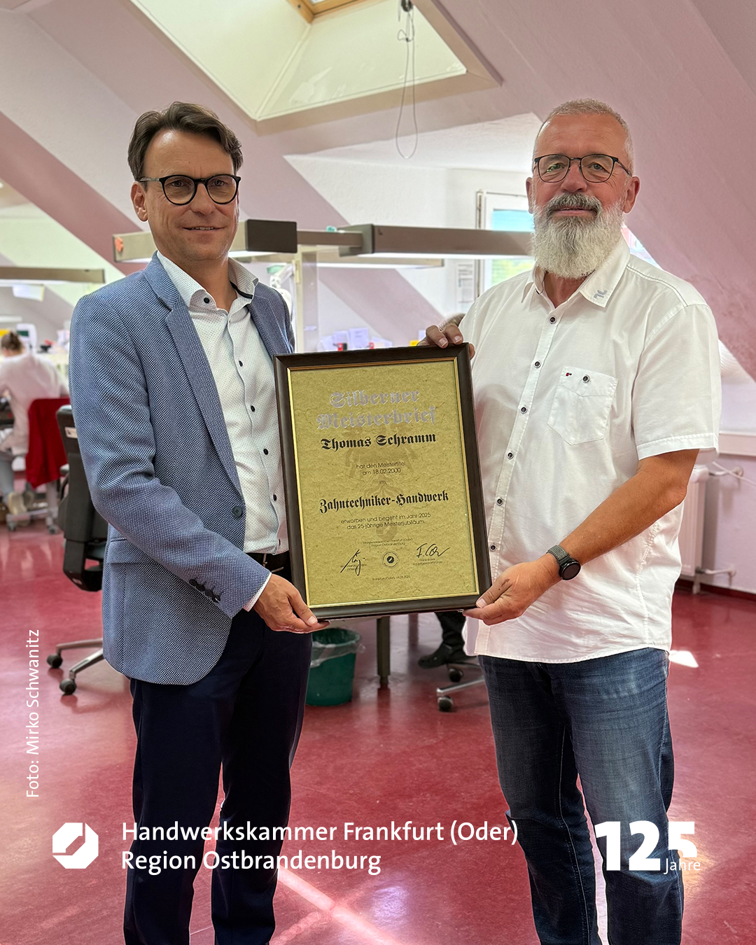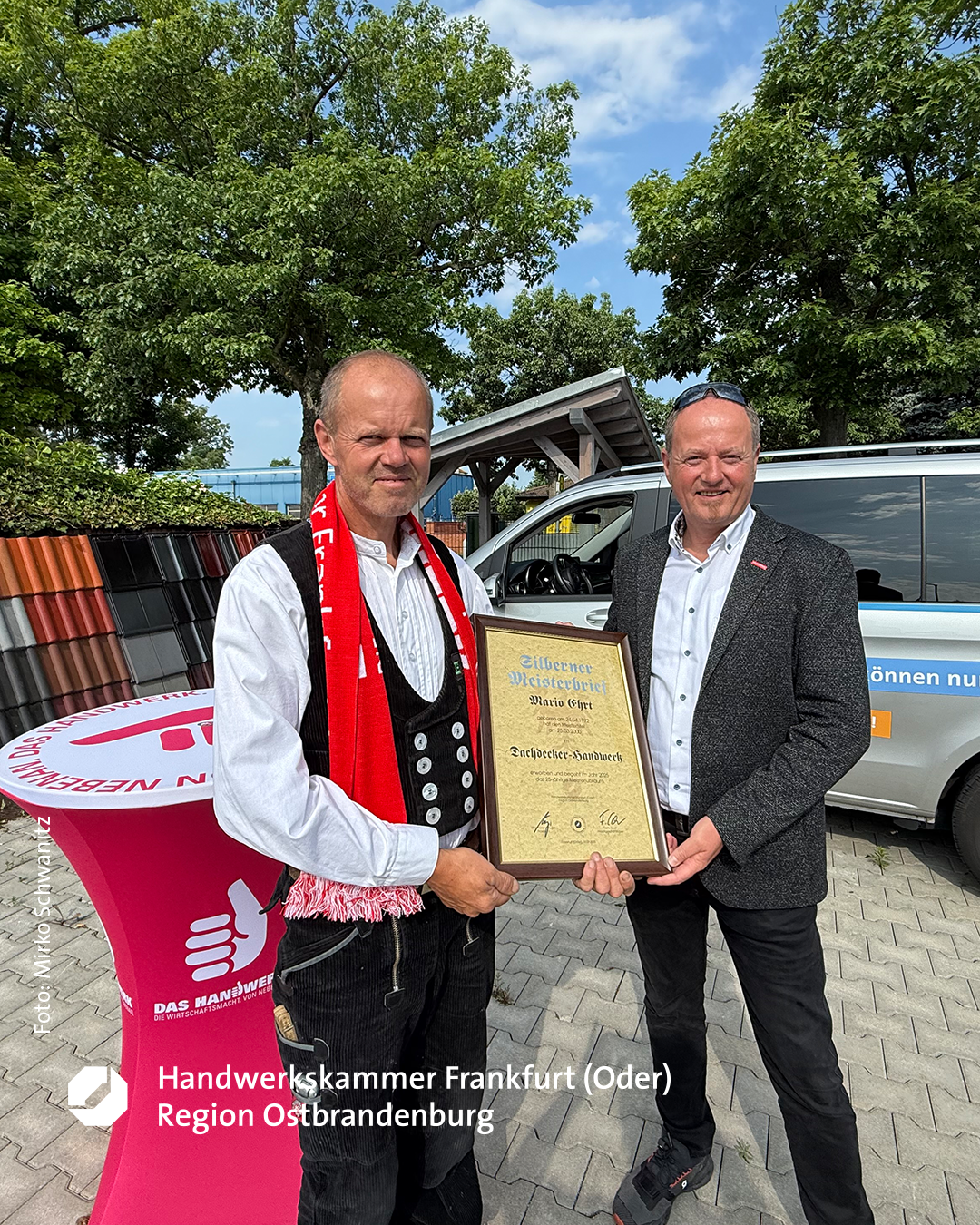 Auch in diesem Jahr macht sich das Meistermobil wieder auf den Weg im Kammerbezirk! Besucht werden Handwerker und Handwerkerinnen, die im Jahr 2000 ihre Meisterprüfung abgelegt und den Antrag gestellt haben. Für 2025 gibt es 103 Anspruchsberechtigte, die im Januar per Brief informiert wurden. Mit der Rückmeldung besteht die Möglichkeit der persönlichen Übergabe oder einer Zusendung per Post. 67 haben sich gemeldet, davon machen 31 vom Angebot Gebrauch, den Silbernen Meisterbrief vom Präsidenten oder Hauptgeschäftsführer der Kammer, persönlich entgegen zu nehmen. Die Tour de Meister führt in die Betriebe vor Ort, um gleichzeitig Wünsche und Problemlagen besprechen zu können. Von Juni bis Oktober geht es durch Ostbrandenburg. Hier erste Impressionen: