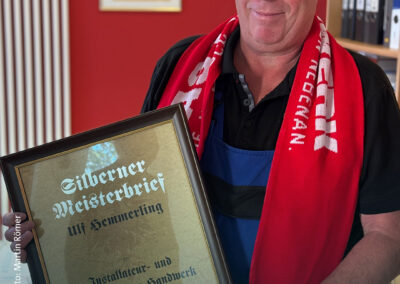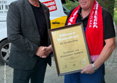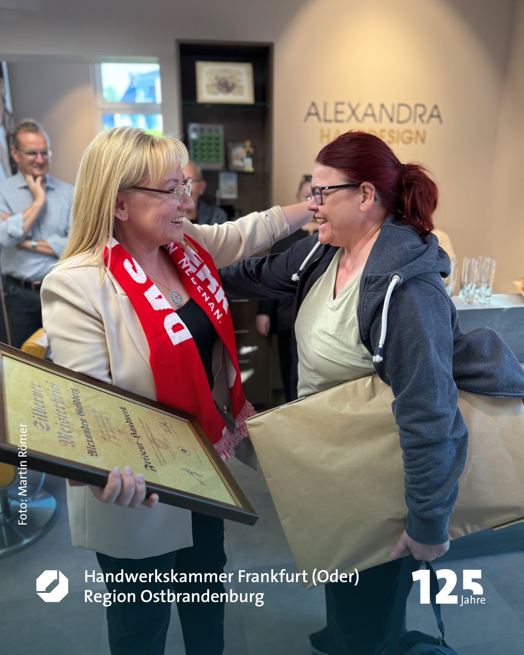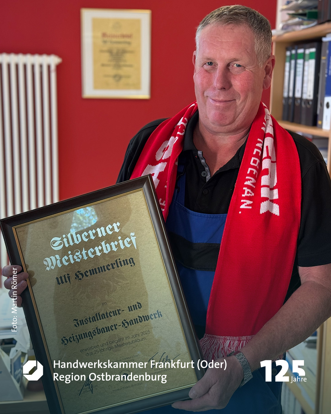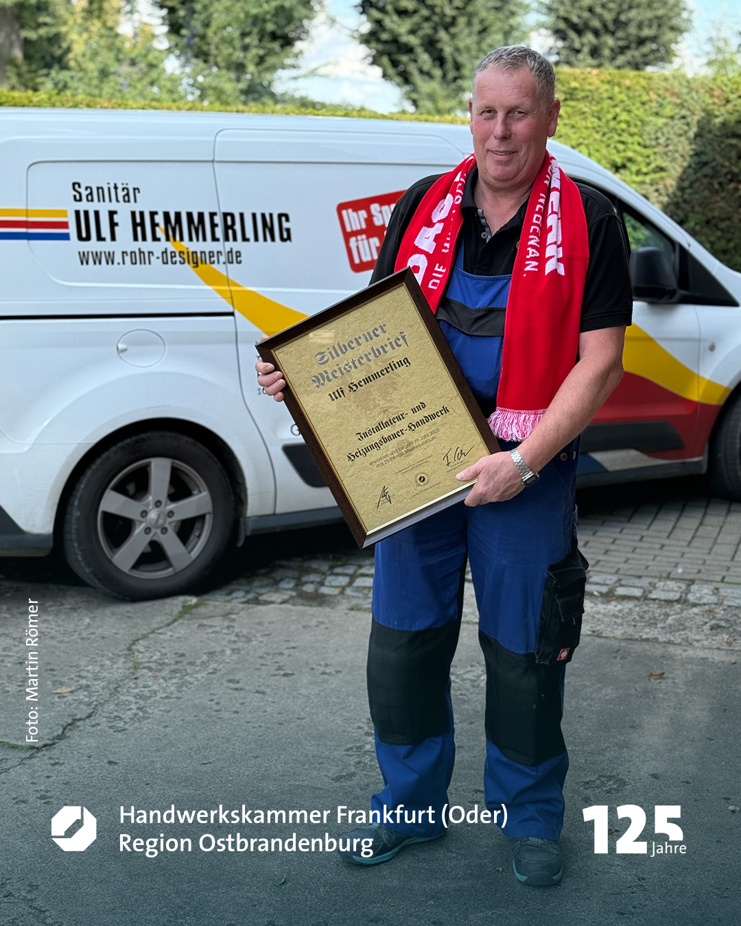 Auch in diesem Jahr macht sich das Meistermobil wieder auf den Weg im Kammerbezirk! Besucht werden Handwerker und Handwerkerinnen, die im Jahr 2000 ihre Meisterprüfung abgelegt und den Antrag gestellt haben. Für 2025 gibt es 101 Anspruchsberechtigte, die im Januar per Brief informiert wurden. Mit der Rückmeldung besteht die Möglichkeit der persönlichen Übergabe oder einer Zusendung per Post. 65 haben sich gemeldet, davon machen 30 vom Angebot Gebrauch, den Silbernen Meisterbrief vom Präsidenten oder Hauptgeschäftsführer der Kammer, persönlich entgegen zu nehmen. Die Tour de Meister führt in die Betriebe vor Ort, um gleichzeitig Wünsche und Problemlagen besprechen zu können. Von Juni bis Oktober geht es durch Ostbrandenburg. Hier erste Impressionen: