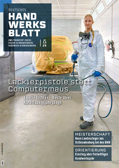 In dieser Ausgabe berichten wir über die aktuelle Konjunkturumfrage im Handwerk, und einen Besuch bei Emilie Eichler. Die 20-jährige Lackiererin war Beste ihres Ausbildungsjahrganges. Außerdem informieren wir über die ostbrandenburgischen Teilnehmerinnen und Teilnehmer an den Deutschen Meisterschaften des Handwerks. In Betriebsporträts erfahren sie mehr über die Sieger des Brandenburgischen Ausbildungspreises 2025, die Malermeister Voss GmbH in Schwedt und den Nachfolgeprozess in der Firma Isomaxx Dämmtechnik. Darüber hinaus berichten wir über eine ganz besondere Frankfurter Straßenbahnfahrt, die Erfahrungen von Lehrlingen in ihrem Auslandspraktikum im spanischen Valencia u. v. a. m. Reinschauen lohnt sich!