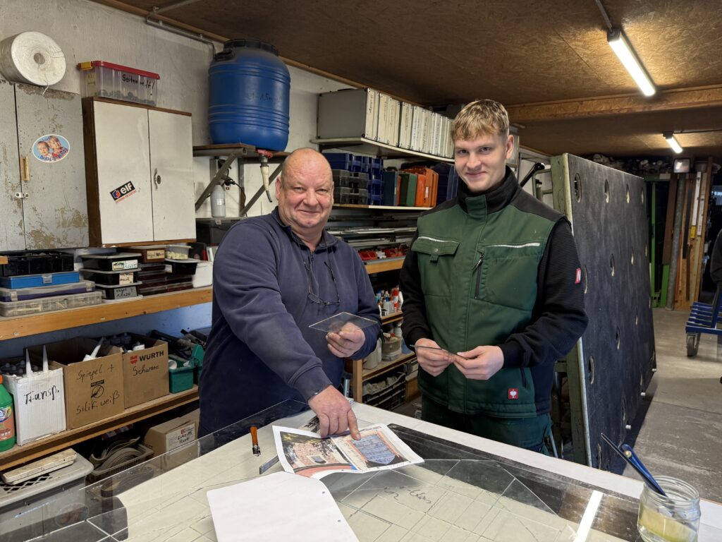 Die Wende überlebte der Betrieb, weil Matthias Vater sinnvoll investierte, sich Lizenz und Gebietsschutz für ein belgisches Isolierglas-Patent sicherte und damit am einsetzenden Sanierungsboom profitieren konnte. „Unser Stolz sind natürlich die Fenster im Dominikanerkloster in Prenzlau oder kunstvolle Bleiverglasungen in Kapellen und Kirchen.“ Heute beschäftigt die Firma zwei Mitarbeiter, dazu kommt Sohn Tim als Lehrling. „Er kam eines Tages und sagte: Papa, ich will auch Glaser werden.“ Inzwischen absolviert Tim seine überbetriebliche Ausbildung in Berlin – damit die Geschichte der Glaserei Blank aus Gramzow in der Uckermark weitegeschrieben werden kann. Übrigens: Auch Tims Schwester Lisa hat sich in die Glaserei verliebt. Wenn auch auf andere Weise. Sie ist bereits Optikern und macht gerade ihren Meister.… Mirko Schwanitz