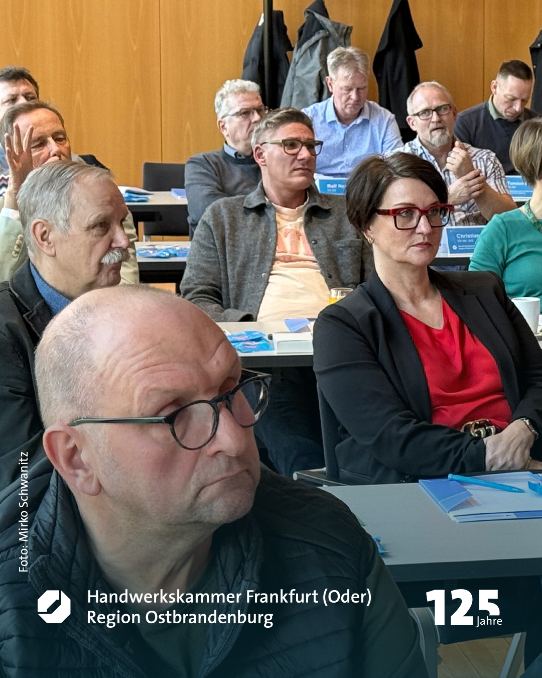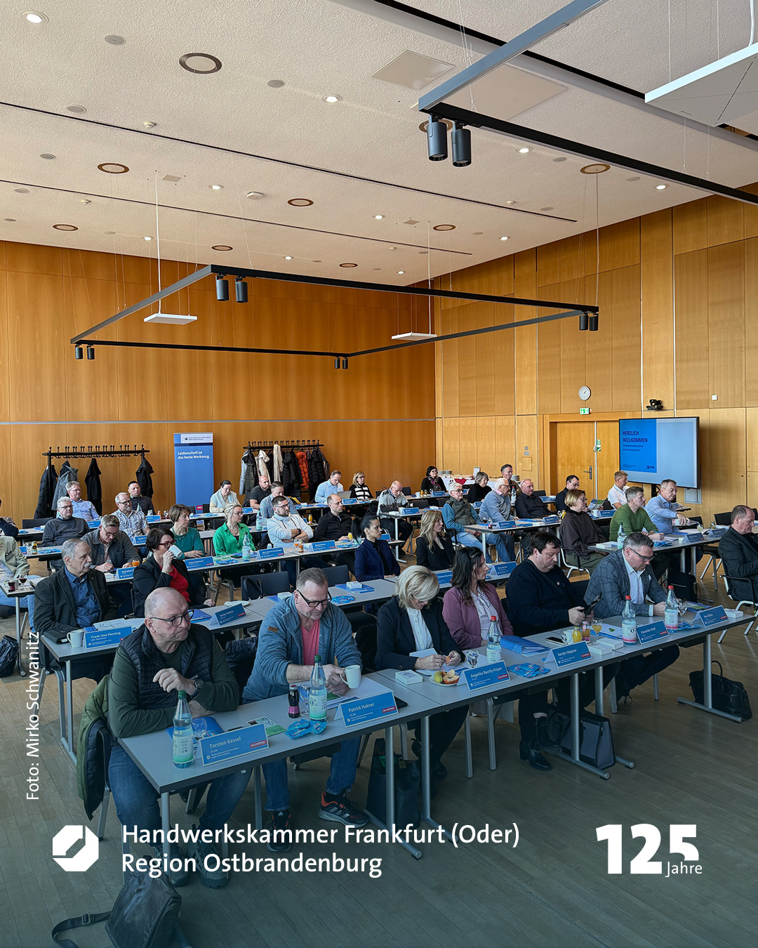 Zur diesjährigen Ehrenamtsschulung der Handwerkskammer nahmen 48 Handwerkerinnen und Handwerker aus Innungen und Kreishandwerkerschaften im Bildungszentrum Erkner teil. Die Veranstaltung zählt zu den wichtigsten Weiterbildungs- und Austauschtreffen für ehrenamtlich Aktive im regionalen Handwerk.