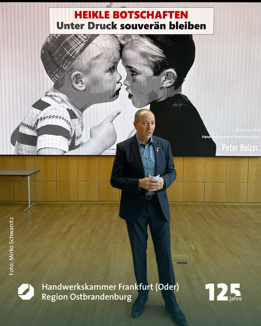 Für einen nachdenklichen, aber motivierenden Abschluss sorgte Autor Peter Holzer. In seinem Vortrag beleuchtete er die mentalen Hintergründe der aktuellen wirtschaftlichen Situation und gab Impulse, wie Führungskräfte und Ehrenamtsträger mit Unsicherheit und Veränderung konstruktiv umgehen können.