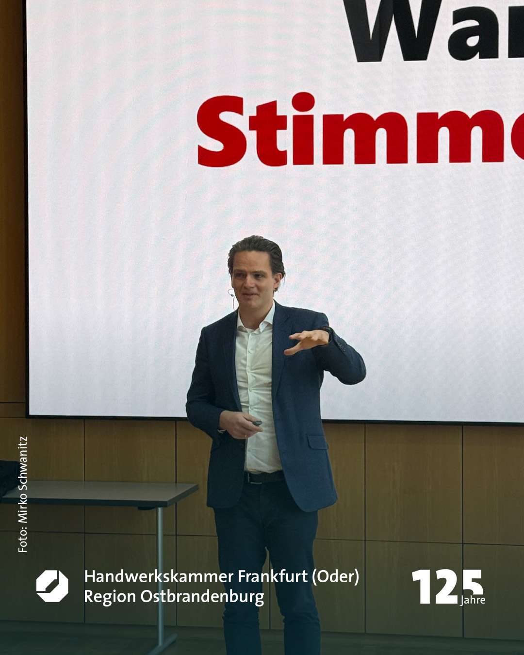 Zu den inhaltlichen Höhepunkten der Schulung gehörte der Vortrag von Lukas Fischer vom Helmut-Priest-Institut, der einen verständlichen und praxisnahen Einstieg in das Thema Künstliche Intelligenz im Handwerk bot.