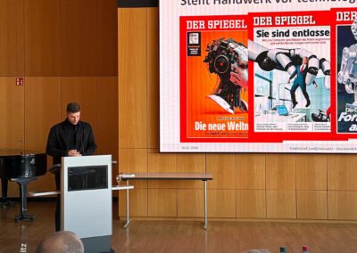 Er stellte konkrete Anwendungsfelder vor – von digitalen Assistenten über Prozessautomatisierung bis hin zur Kundenkommunikation.