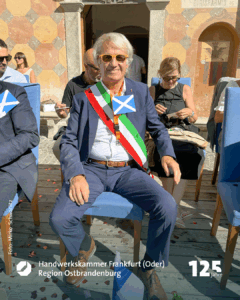 Claudio Cottini, kann von seinem Fenster im Rathaus von Santa Maria Maggiore sehen, wie sich der Platz langsam füllt. Schon früh sind die Absperrgitter aufgebaut. Freiwillige Helfer von den Schulen, der Feuerwehr bis zu Guardia Financa wuseln herum. „Wie ein Ameisenhaufen, der erwacht“, denkt er und lächelt. Aber er weiß: Hier hat alles seine Ordnung. Jeder weiß, was er zu tun hat. Das Schornsteinfegertreffen ist das wichtigste Fest für unsere Gemeinde“, sagt er und rückt seine modische Brille zurecht. Die Augen dahinter blitzen einen an, wie die goldenen Knöpfe an den Jacken der Schornsteinfeger. Cottini kann sich noch erinnern, wie alles anfing. „Als die Idee aufkam, zu Beginn der 1980er Jahre, saß ich bereits im Gemeinderat. Damals noch in der Opposition“, lacht er. „Aber ich erinnere mich, dass es nur wenige Gegenstimmen gab. Alle fanden die Idee großartig. Natürlich dachte damals niemand daran, was wir damit auslösen, wohin sich das Ganze entwickeln würde.“ Heute ist das Treffen der wichtigste Wirtschaftsfaktor in der sonst wirtschaftlich schwachen Region. Alle Hotels, Pensionen und Ferienwohnungen, auch in der näheren Umgebung, sind ausgebucht. Die Parade der Glücksbringer aus aller Welt zieht inzwischen immer mehr Gäste an. „Und alle, die kommen, lassen pro Tag im Durchschnitt 100 Euro in unserem 1300-Seelen-Ort.“