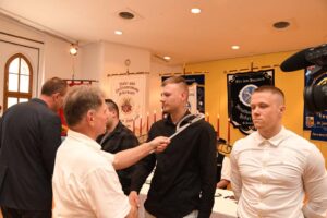 In festlichem Rahmen beging die Kreishandwerkerschaft Uckermark am Mittwoch der Karwoche ihre Lehrlingsfreisprechung. Insgesamt bestanden 32 Gesellen und eine Gesellin ihrer Prüfungen. 29 von ihnen nahmen ihre Gesellenurkunden im Plenarsaal in Prenzlau persönlich in Empfang. Insgesamt waren sieben Gewerke vertreten. Nachdem nach alter Sitte drei Handwerksmeister 12 Kerzen entzündet hatten, erhoben die Obermeister der Innungen und ihre Vertreter die jungen Leute in den Gesellenstand. Der „Ritterschlag“ erfolgte mit einem für ihre jeweiligen Handwerk typisches Werkzeug. Dieses Ritual verpflichtet die jungen Profis nun aber auch, ihr Wissen und Können im Sinne der Handwerkerehre einzusetzen. Die meisten Junggesellen wurden von ihren Ausbildungsfirmen in ein Anstellungsverhältnis übernommen.