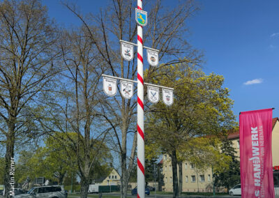 Der Gildebaum vereint die Zeichen von sechs Zünften und steht symbolisch für die Vielfalt, die Tradition und den gesellschaftlichen Stellenwert des Handwerks in der Region. Besonders passend ist der Standort: An zentraler Stelle zeigt der Gildebaum künftig Einheimischen wie Besucherinnen und Besuchern, welchen festen Platz das Handwerk in Lebus einnimmt.