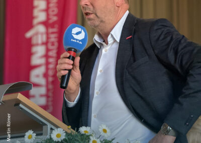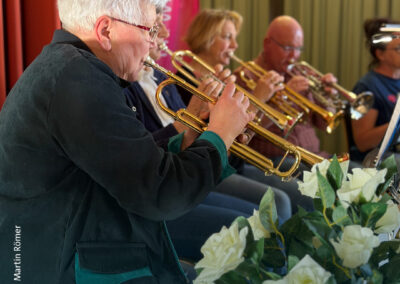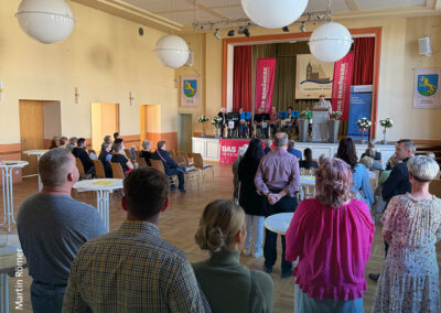 Eröffnet wurde die Veranstaltung von Malermeister Sven van Dyk, der nicht nur die einleitenden Worte sprach, sondern auch die Organisation und Errichtung des Gildebaums maßgeblich initiierte. Musikalisch gestaltet wurde die Einweihung vom Lebuser Posaunenchor, der den feierlichen Rahmen stimmungsvoll unterstrich. Im Anschluss nahm Pfarrer Felmy die Segnung des Gildebaums vor.