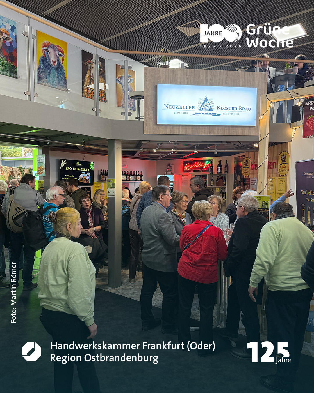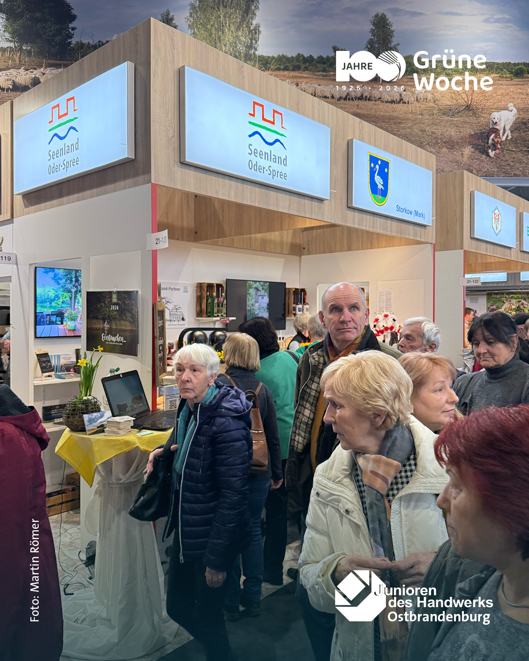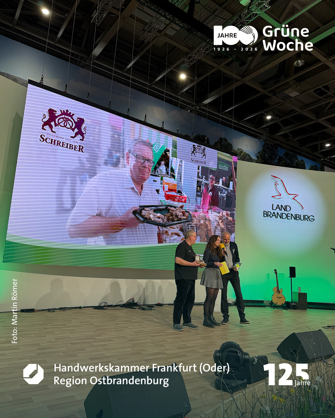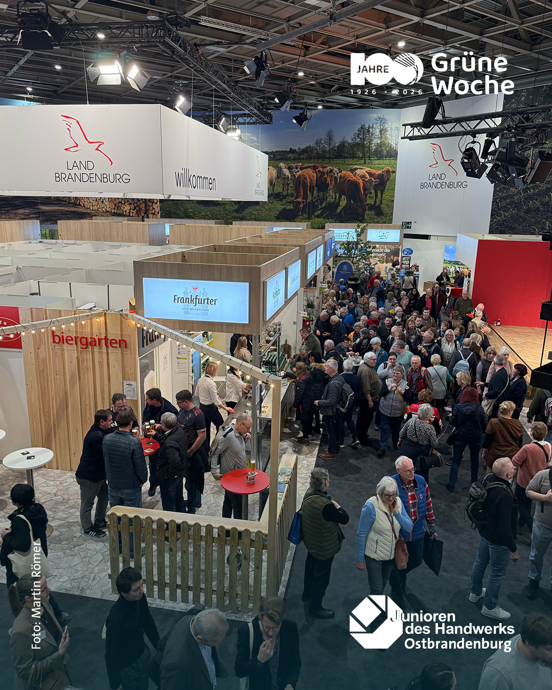 Die Internationale Grüne Woche in Berlin ist auch in diesem Jahr einer der wichtigsten Treffpunkte für regionale Produzenten, Lebensmittelhandwerk, Politik und Besucherinnen und Besucher aus ganz Deutschland. Das brandenburgische Handwerk zeigt dort, wie vielfältig, innovativ und zukunftsorientiert es ist.