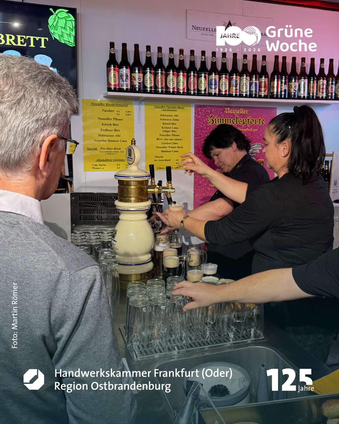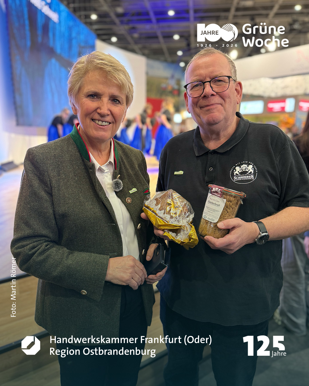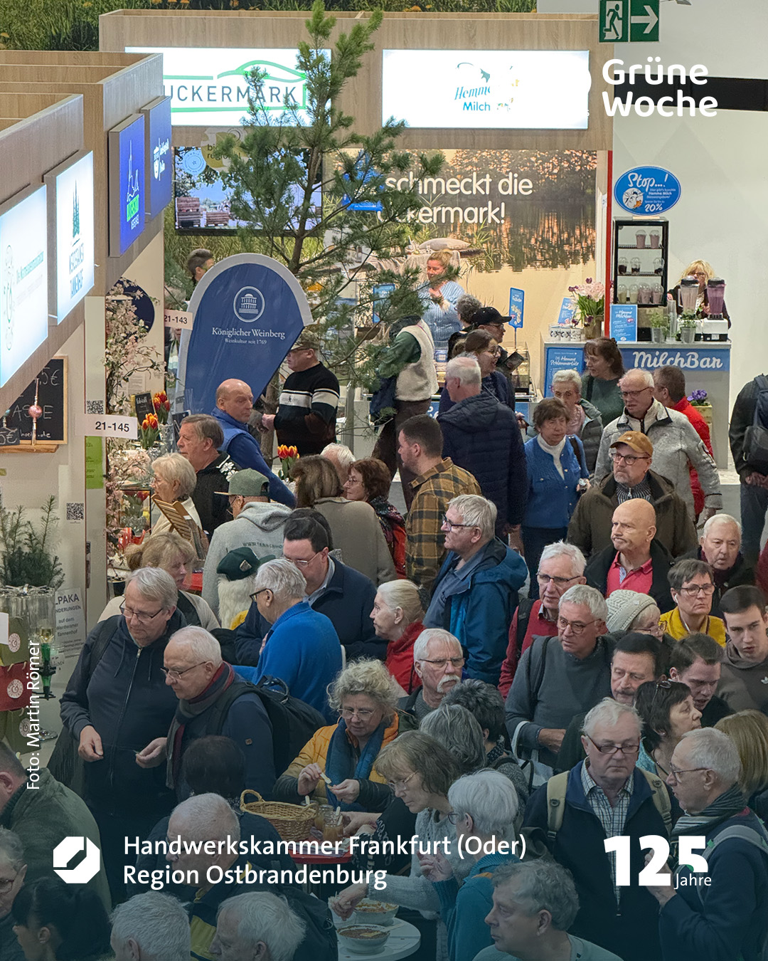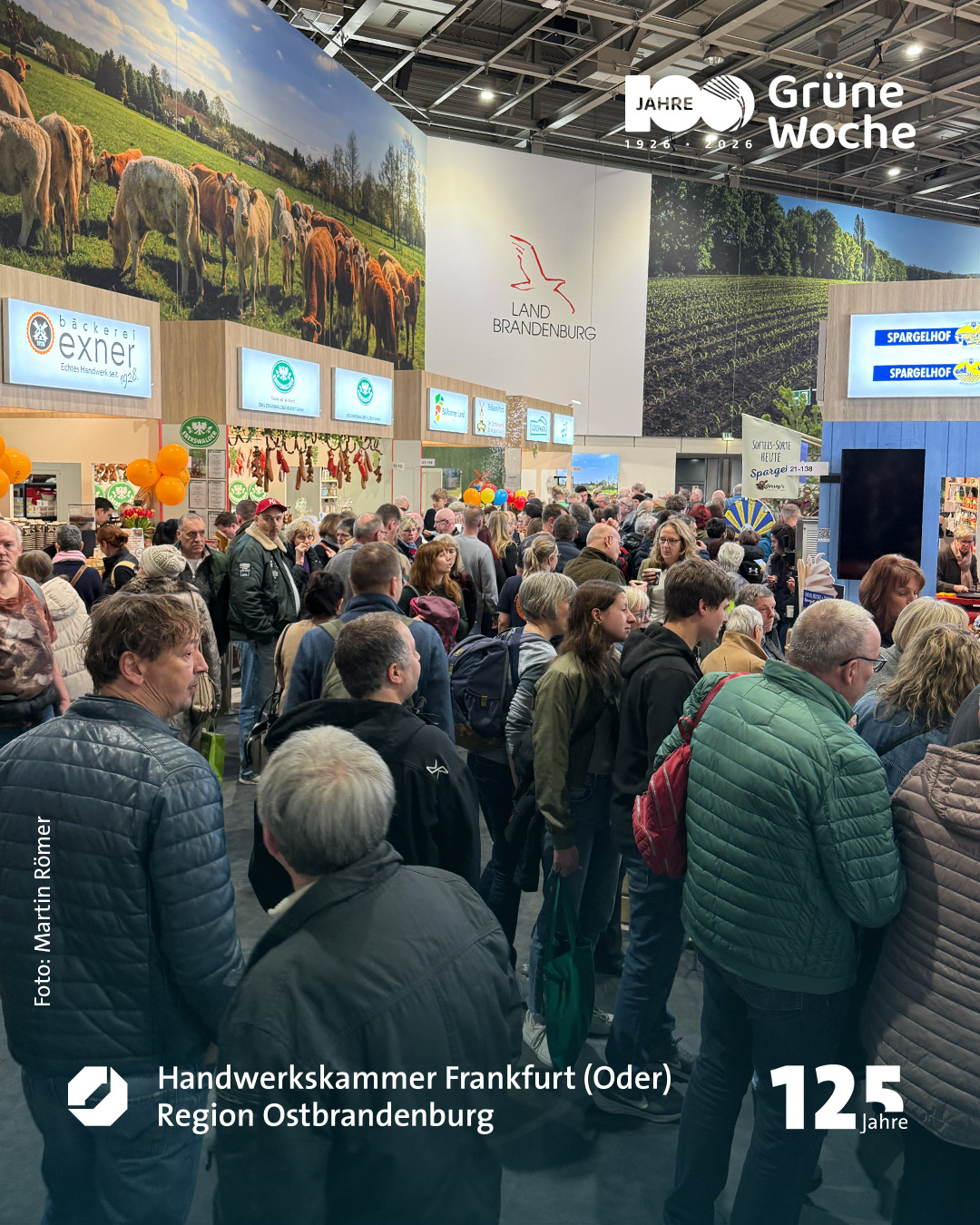 Die Internationale Grüne Woche in Berlin ist auch in diesem Jahr einer der wichtigsten Treffpunkte für regionale Produzenten, Lebensmittelhandwerk, Politik und Besucherinnen und Besucher aus ganz Deutschland. Das brandenburgische Handwerk zeigt dort, wie vielfältig, innovativ und zukunftsorientiert es ist.