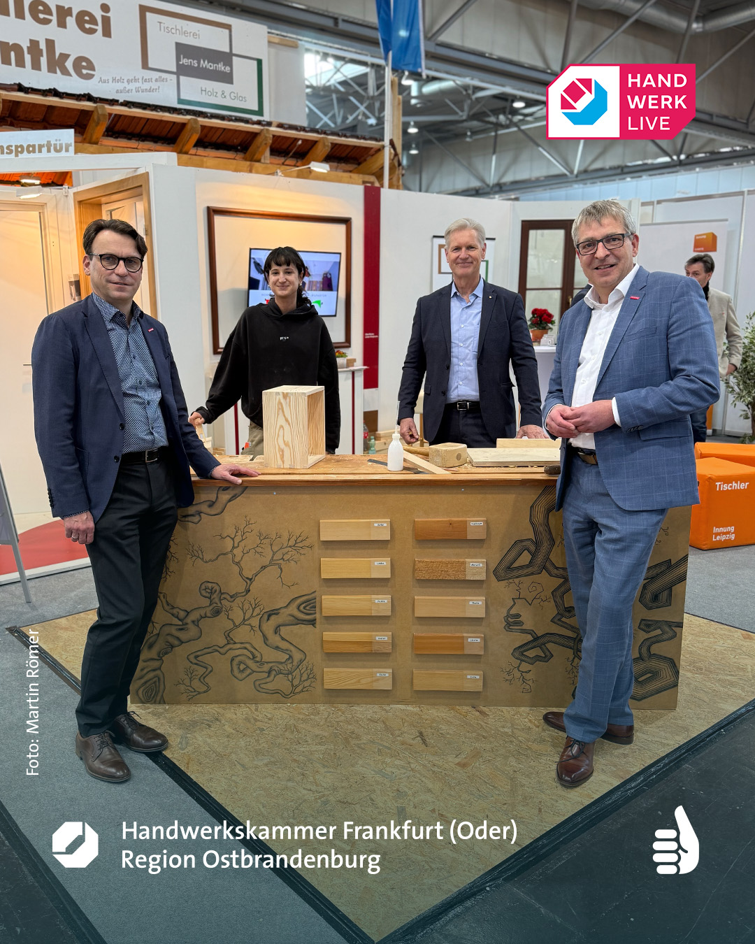 Im Rahmen der Messe „HANDWERK live 2026“ trafen sich am 04. Februar die Hauptgeschäftsführer der ostdeutschen Handwerkskammern sowie Staatssekretäre der Wirtschaftsministerien der neuen Bundesländer zum gemeinsamen Austausch. Auch die brandenburgischen Hauptgeschäftsführer Frank Ecker (Handwerkskammer Frankfurt (Oder) – Region Ostbrandenburg) und Ralph Bührig (Handwerkskammer Potsdam) nahmen an dem Treffen teil.