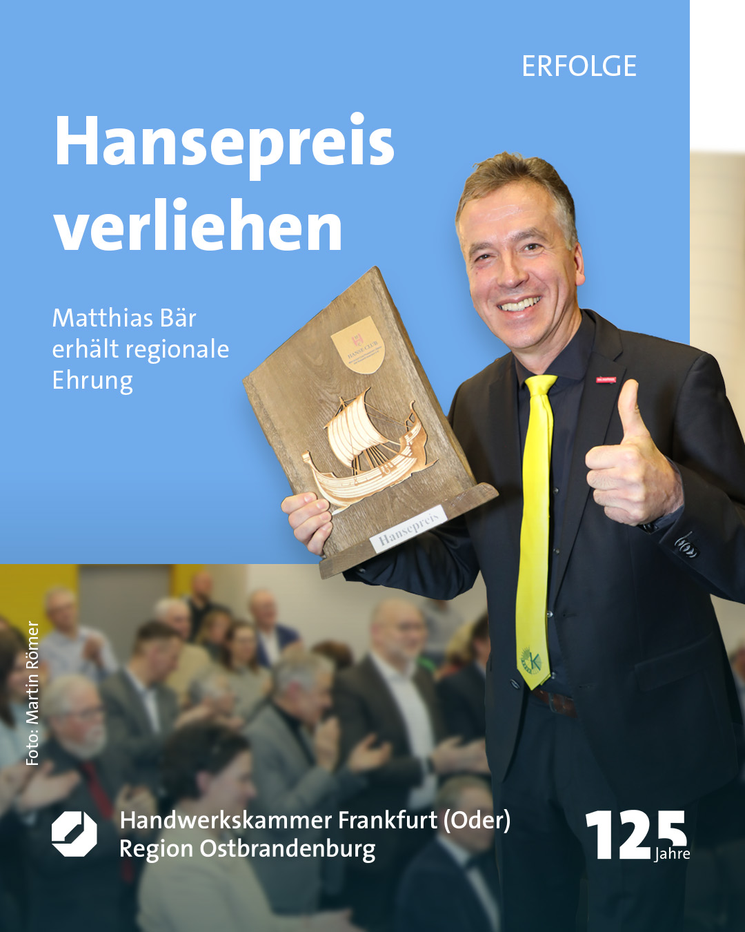 Die Handwerkskammer Frankfurt (Oder) – Region Ostbrandenburg gratuliert herzlich zu dieser Auszeichnung.