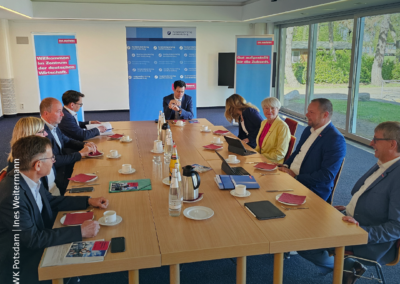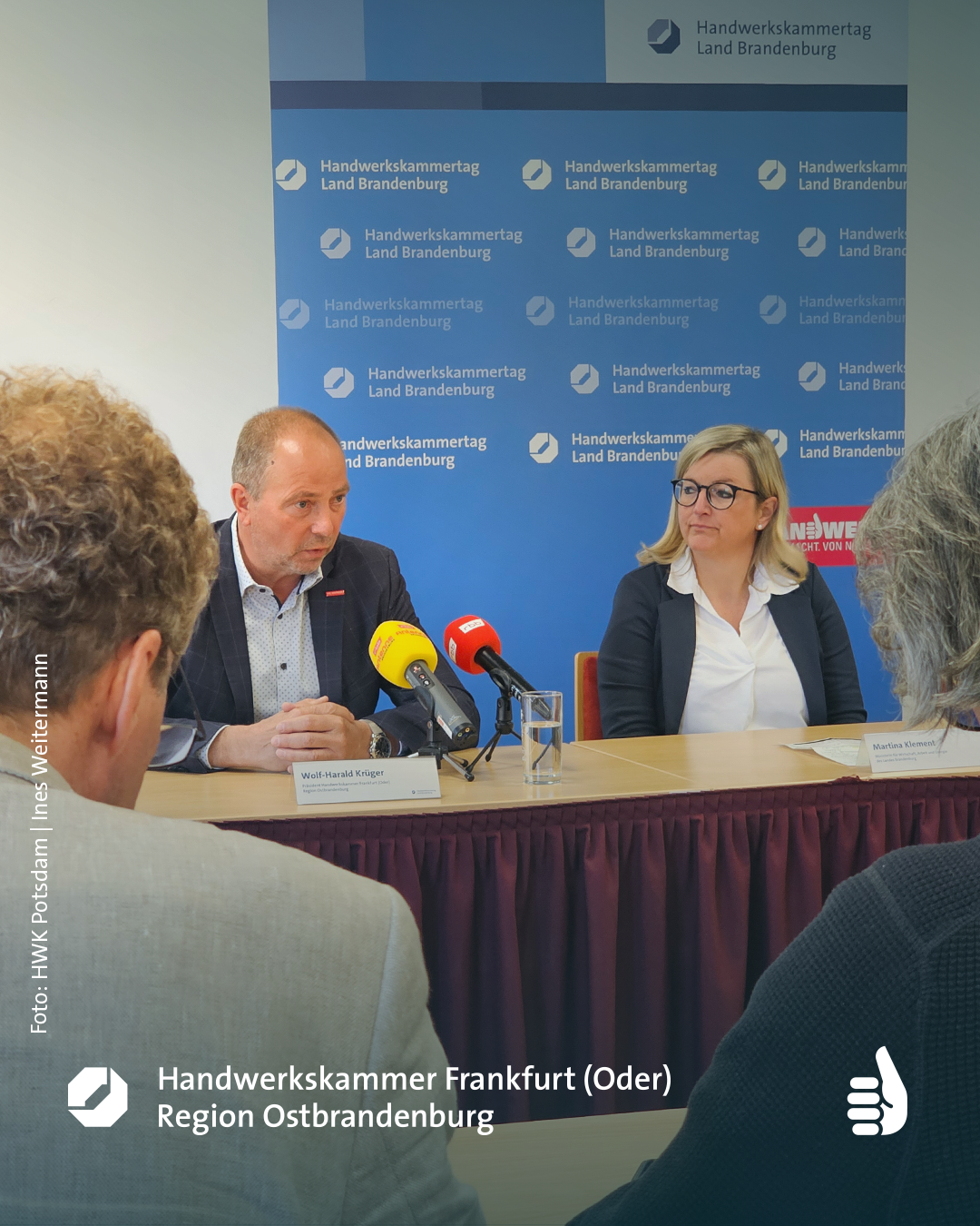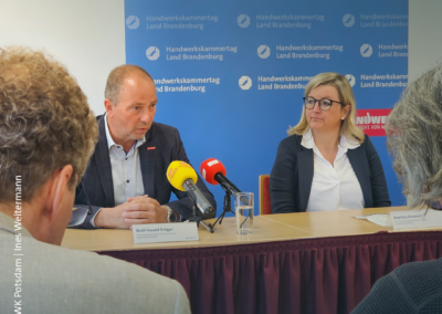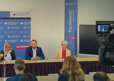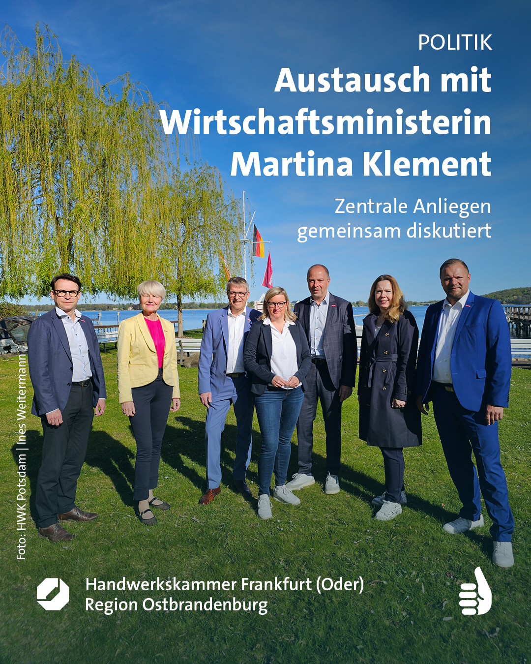 Im anschließenden gemeinsamen Pressestatement informierten Wirtschaftsministerin Martina Klement und die Präsidenten der brandenburgischen Handwerkskammern über die Schwerpunkte des Austauschs und die Erwartungen an die weitere Zusammenarbeit. Aus Sicht des Handwerks war das erste Treffen ein konstruktiver Auftakt. Entscheidend werde nun sein, dass aus dem offenen Gespräch konkrete Schritte für Entlastung, Ausbildung, Fachkräftesicherung, Nachfolge und Wettbewerbsfähigkeit folgen.