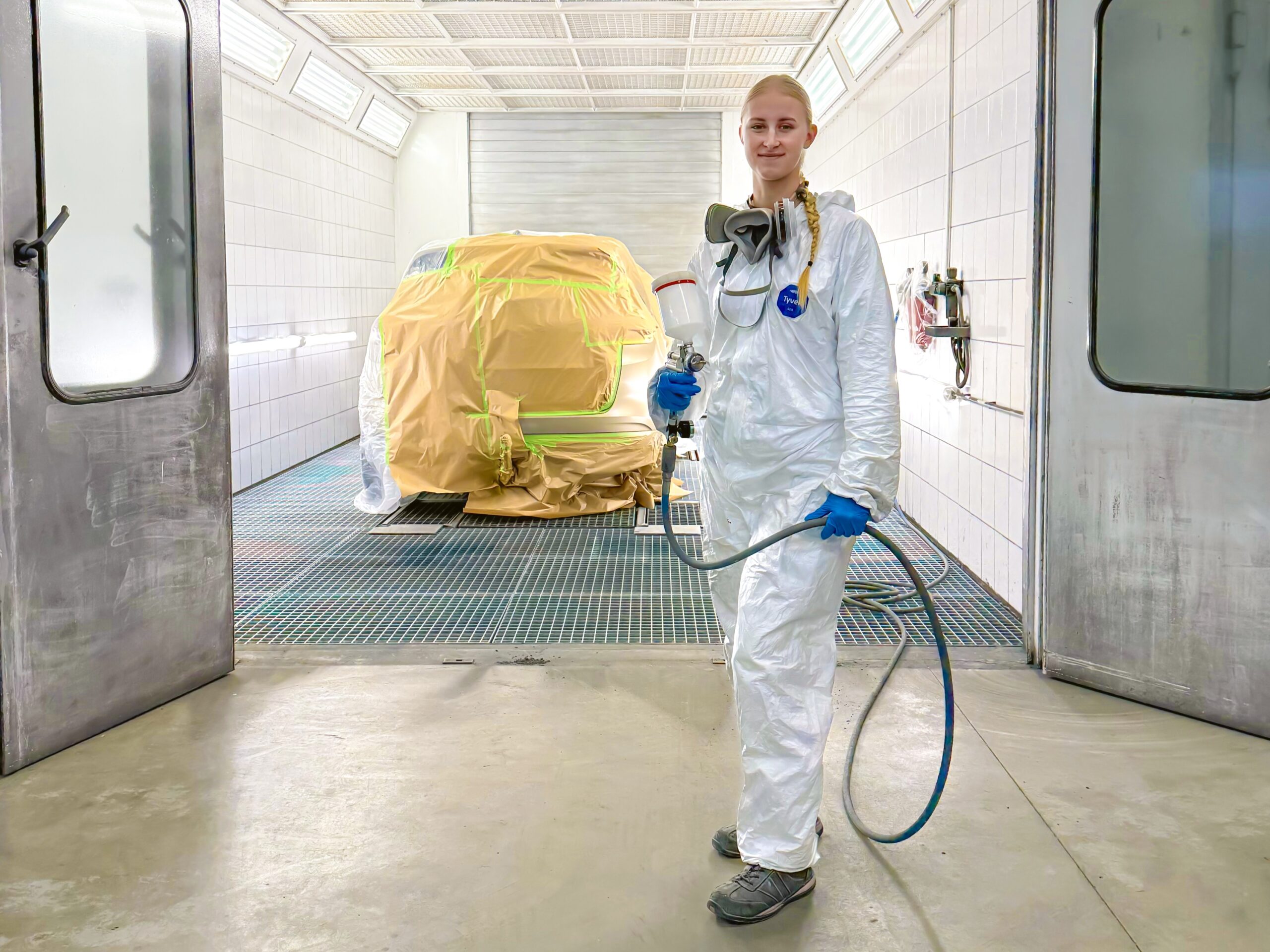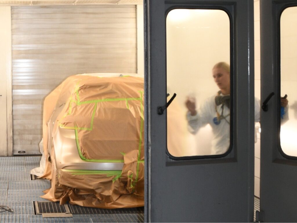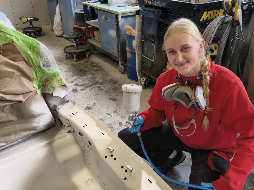 Emelie Eichler in der Lackierkabine