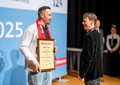 Am 21. März 2025 fand die Meisterfeier der Handwerkskammer im Bürgerhaus Neuenhagen statt. Im festlichen Rahmen wurden über 80 Gesellinnen und Gesellen in den Meisterstand erhoben. Die Veranstaltung war ein bedeutender Moment für die Absolventinnen und Absolventen, ihre Familien sowie Vertreterinnen und Vertreter des Handwerks.