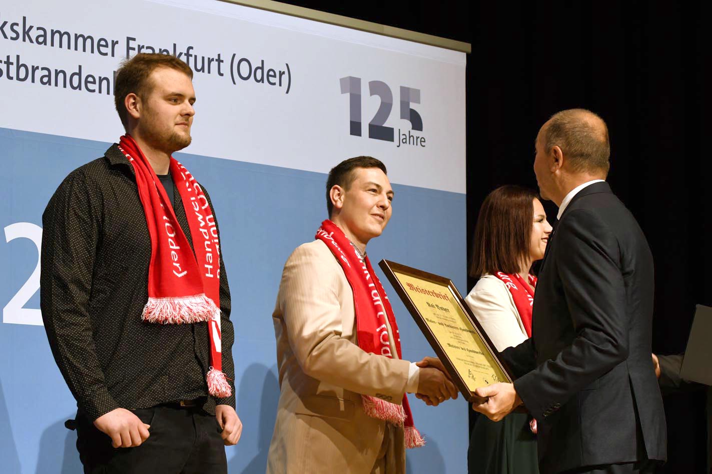 Kammerpräsident Wolf-Harald Krüger ehrte die neuen Meisterinnen und Meister aus verschiedenen Gewerken, darunter: