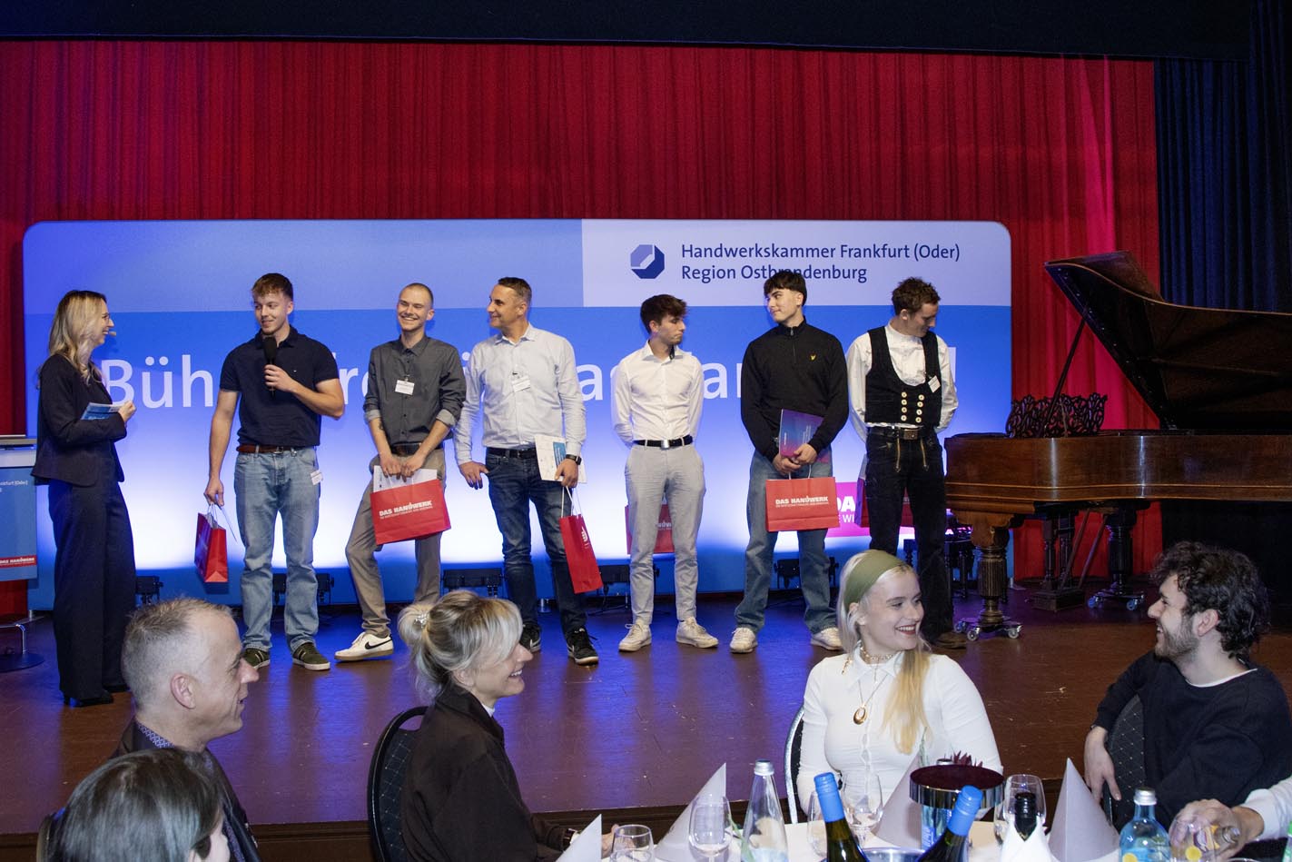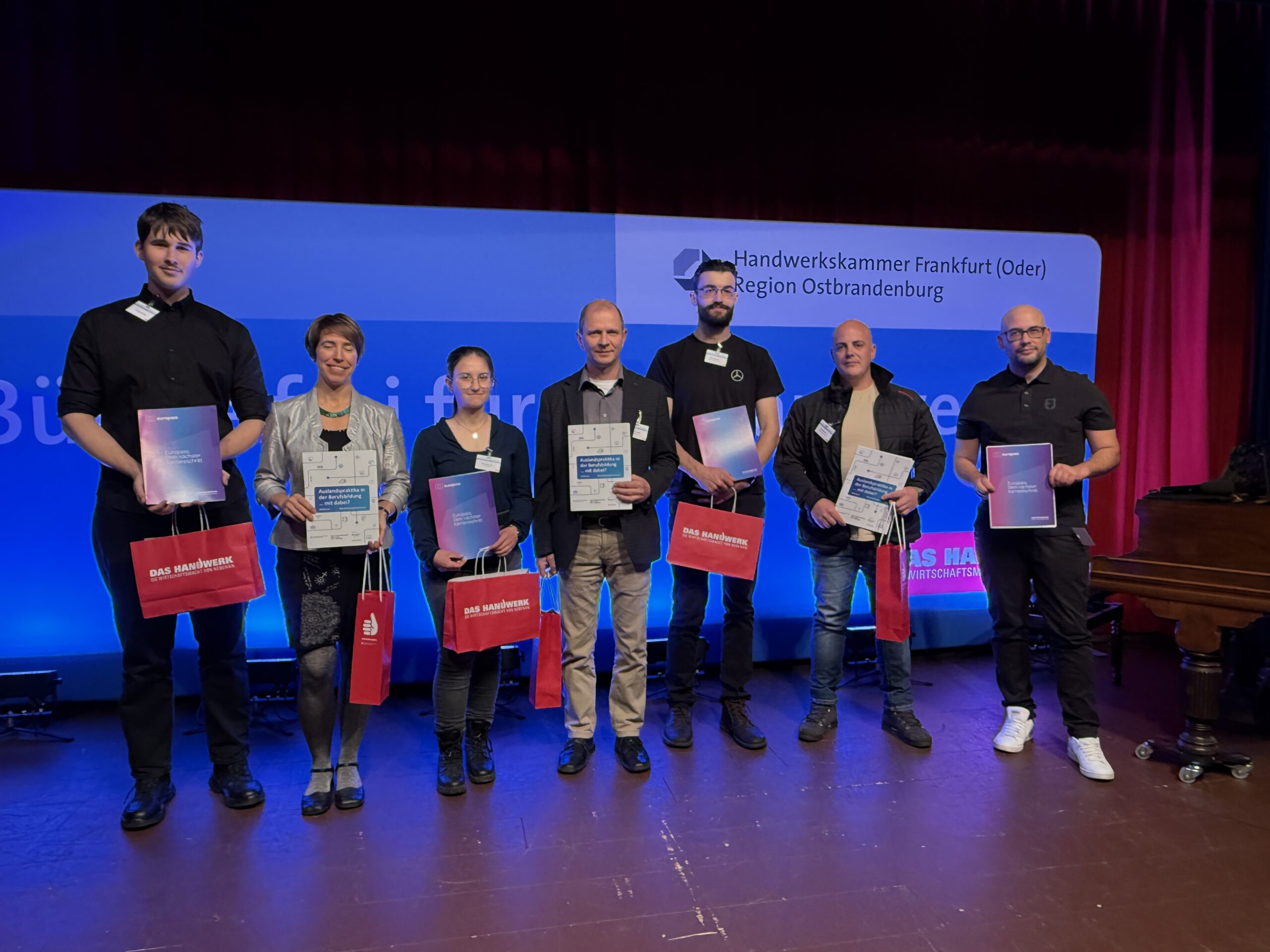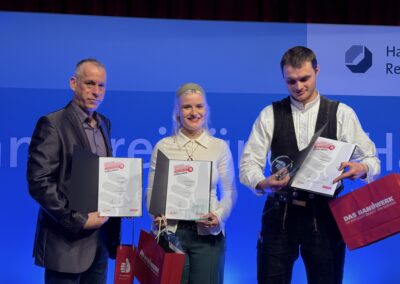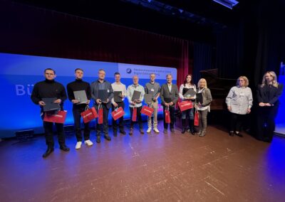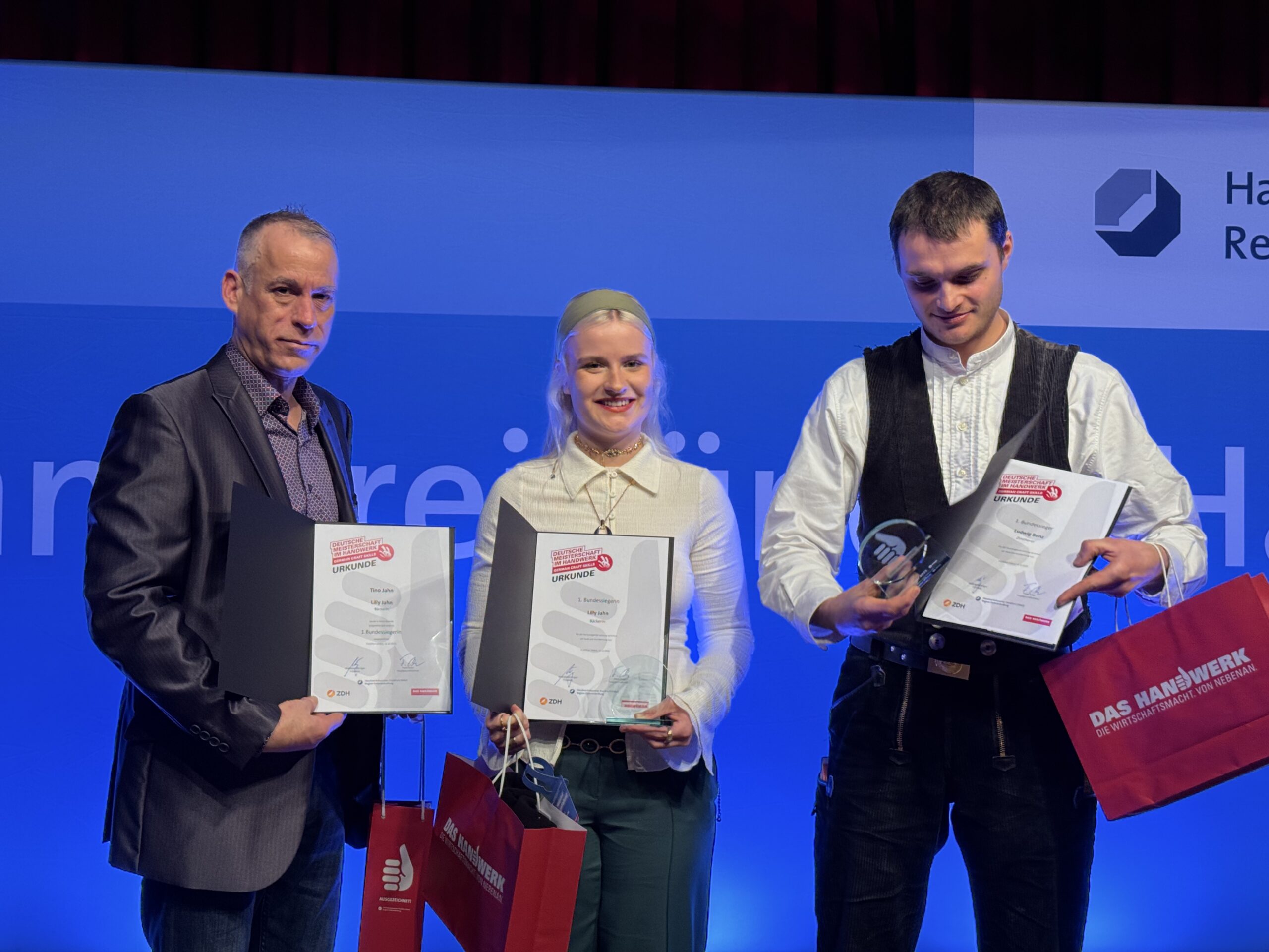 Insgesamt gab es 16 Kammersiegerinnen und Kammersieger, 18 Landessiegerinnen und Landessieger sowie mit Lilly Jahn von der Bäckerei Heidenreich eine Bundessiegerin im Bäckerhandwerk, mit Ludwig Benz von der Radfor GmbH in Melchow einen Bundessieger bei den Zimmerern und mit Lars Dietrich von Petersik Instruments aus Schöneiche den Bundessieger im Metallblasinstrumentenmacherhandwerk. Wir gratulieren!