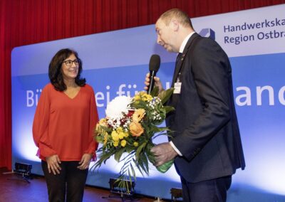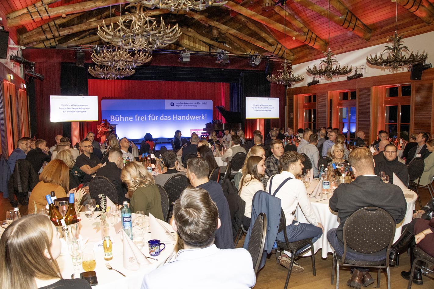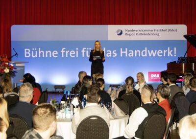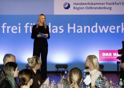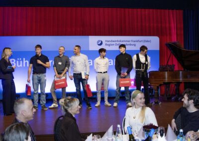 In der festlichen Atmosphäre von Gut Klostermühle bei Alt Madlitz wurden in diesem Jahr die besten Lehrlinge geehrt, Betriebe mit dem Siegel für hervorragende Berufsausbildung ausgezeichnet und eine Vielzahl von Europässen übergeben. Die Festrede hielt der Präsident der Handwerkskammer Frankfurt (Oder) – Region Ostbrandenburg vor mehr als 110 Gästen Das Jahr 2025, so Wolf-Harald Krüger, sei eines der erfolgreichsten in Sachen Berufsausbildung gewesen. Neun Lehrlinge aus dem Kammerbezirk hätten sich für die Deutschen Meisterschaften auf Grund ihrer Leistungen qualifiziert. Acht Lehrlinge hätten sich dann dem Wettbewerb gestellt. Drei seien mit einem Meistertitel zurückgekehrt. Außerdem sei ein vierter Platz bei den Elektrotechnikern und siebenter Platz bei den Fleischern zu verzeichnen gewesen. Wobei die Leistungsdichte so eng war, dass bei den Fleischern nur zwei Punkte den siebten vom zweiten Podestplatz getrennt hätte.